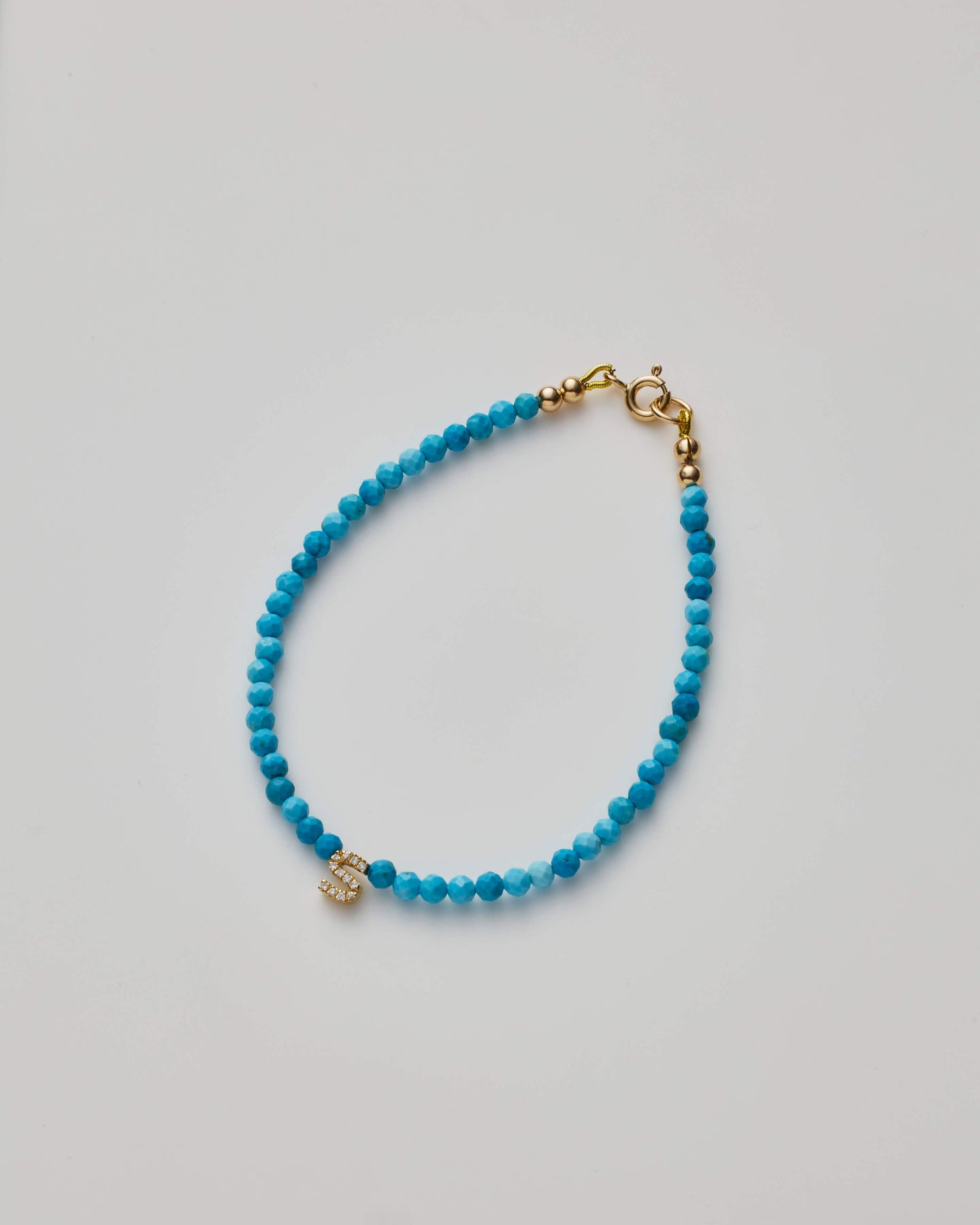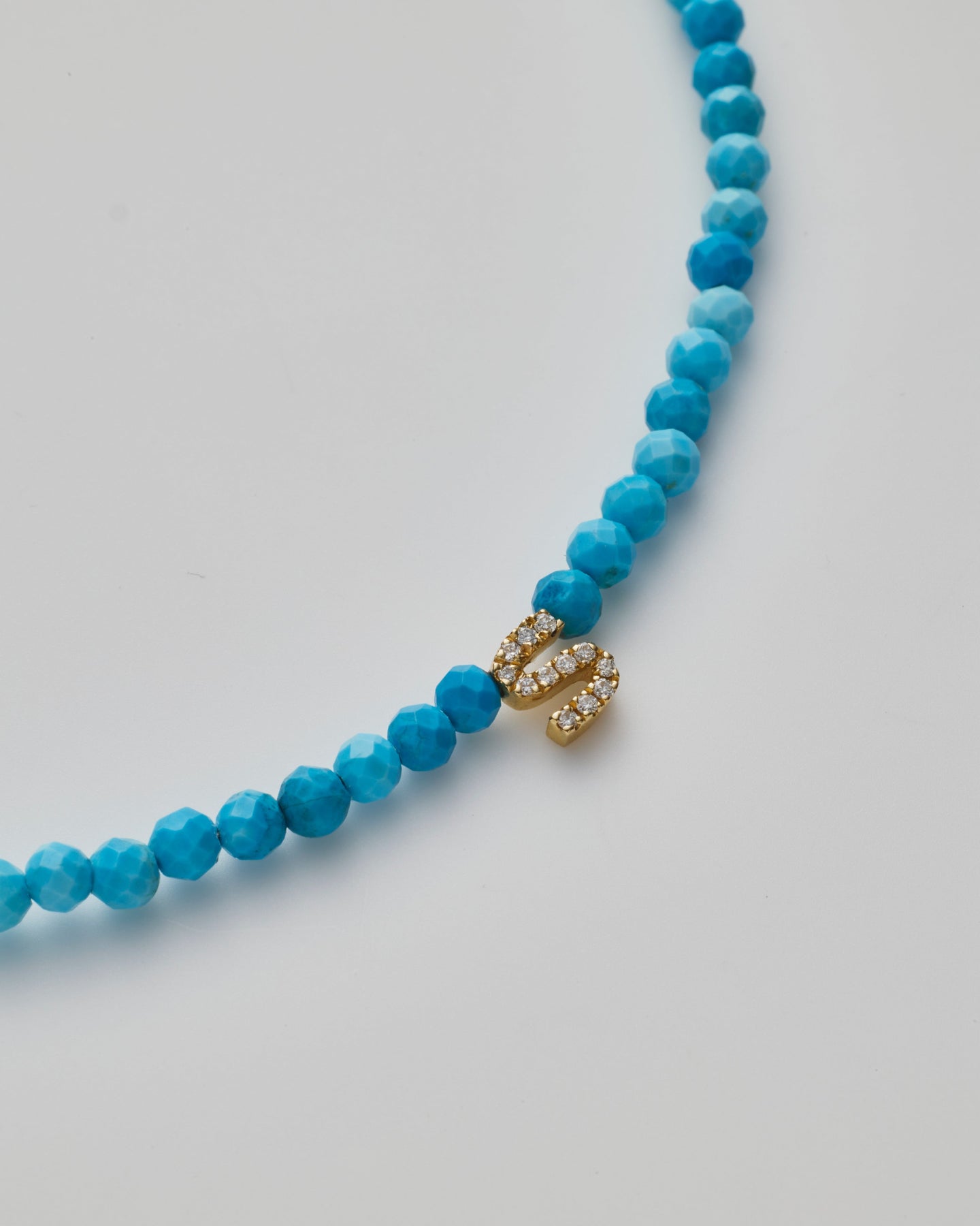 Uniquely yours, these hand-strung gemstones and 14K White Sapphire charm are truly one of one. No two are ever identical, making each a treasure like no other. Turquoise Known as a master healer, it provides protection and brings good fortune to its wearer. We seek out every stone for its organic beauty, natural inclusions and all.